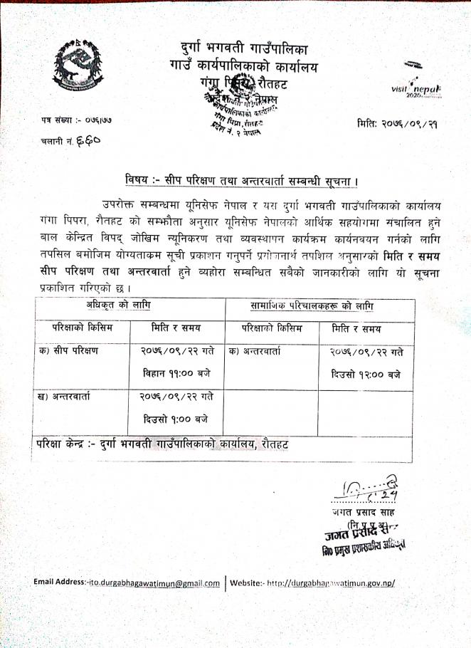 unicef को DDR को सिप र अन्तरवार्ता एक्सम को सूचना जारी।